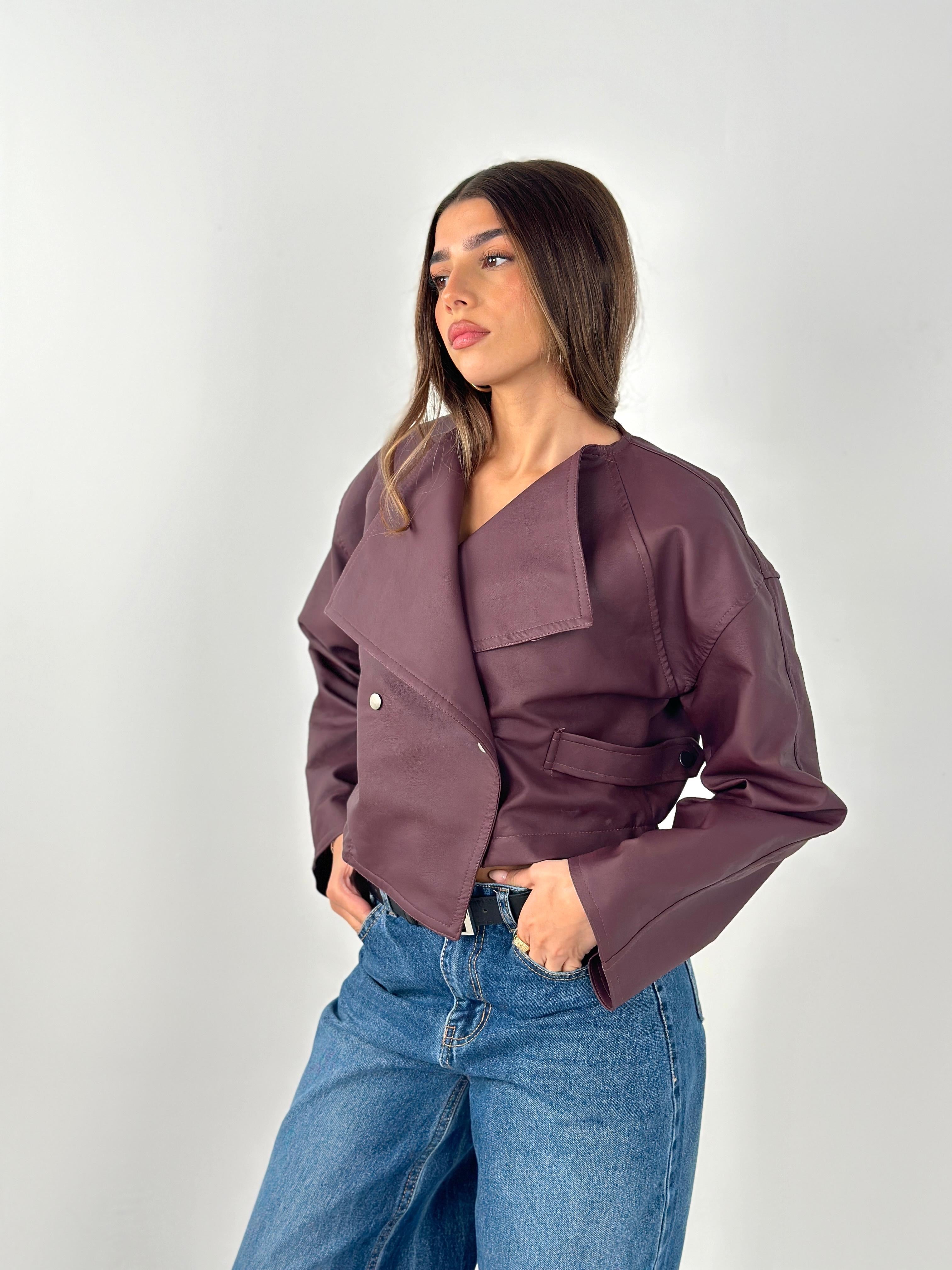 Crisscross Leather Jacket - Burgundy