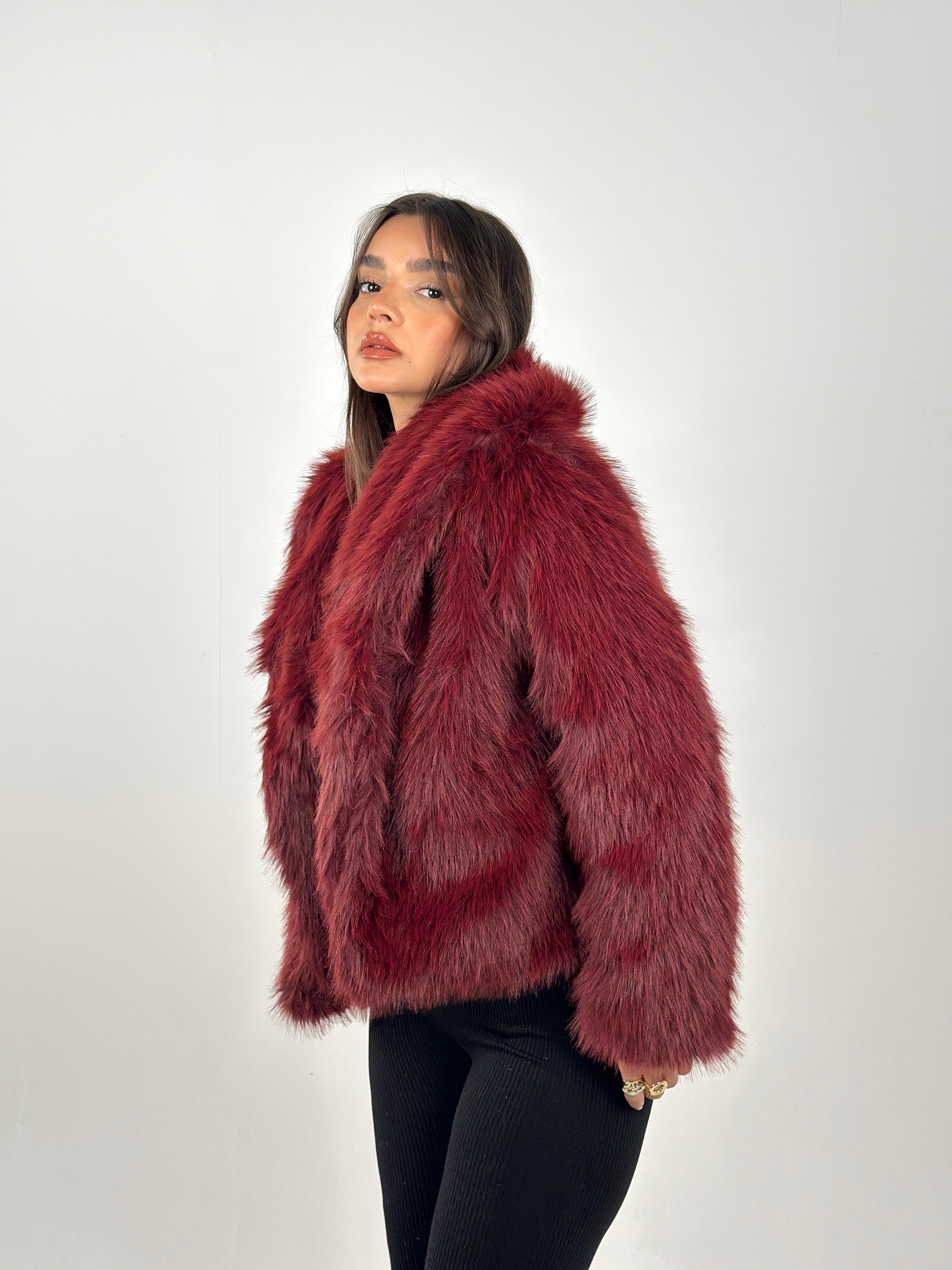 Cropped Fur Coat - Burgundy
