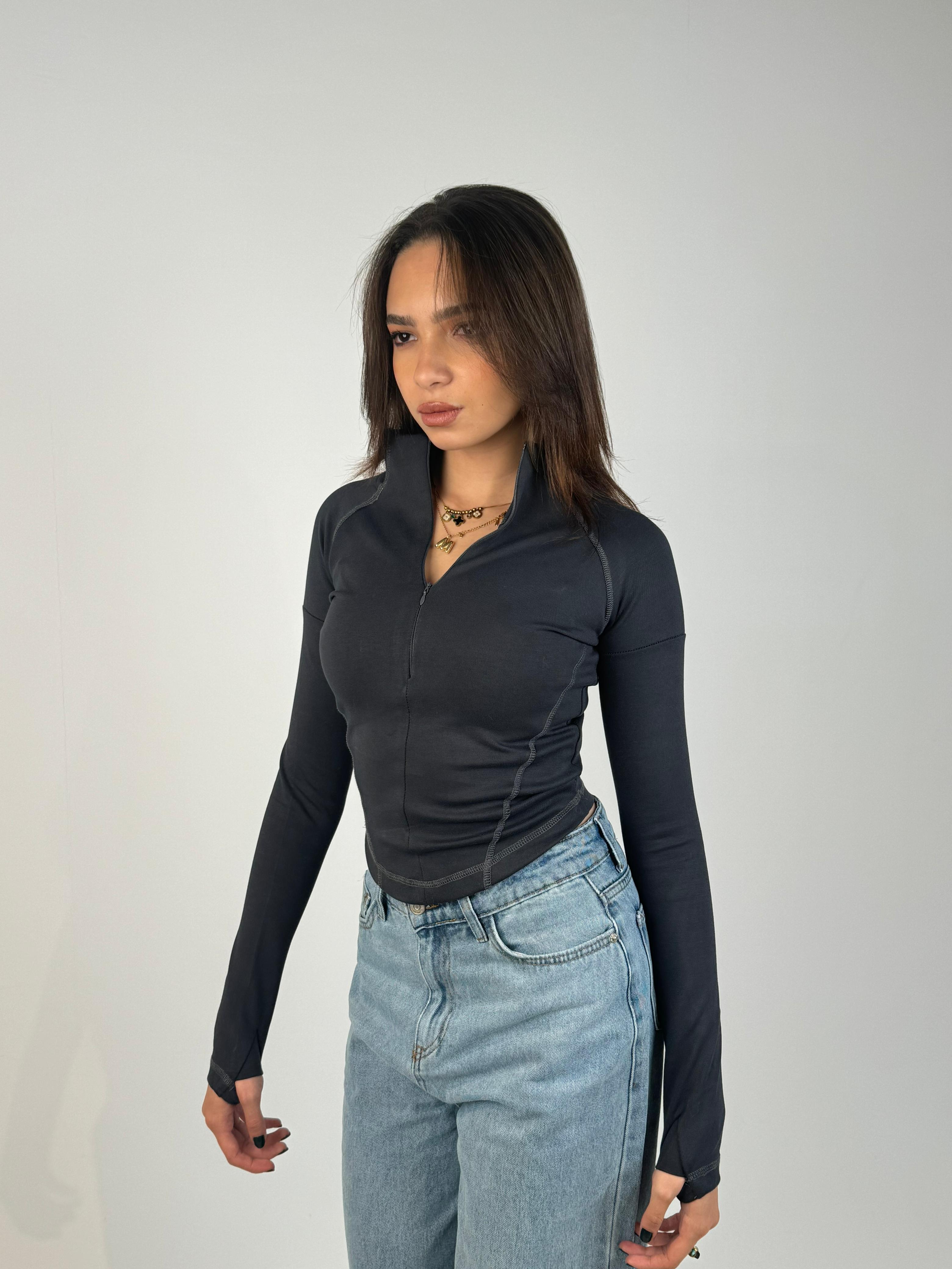 Curved Basic Top - Grey