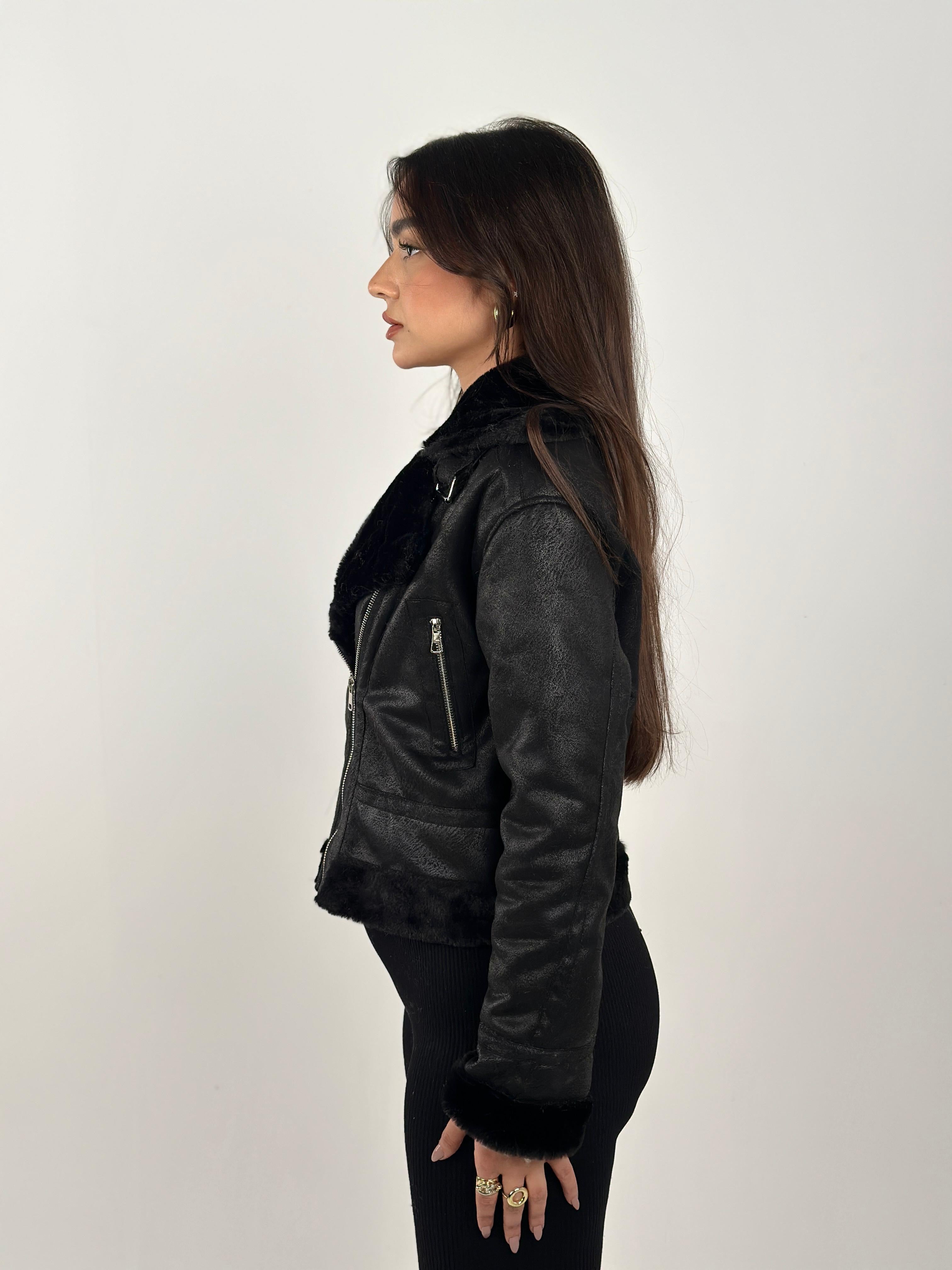 Velvet X Fur Jacket - Black